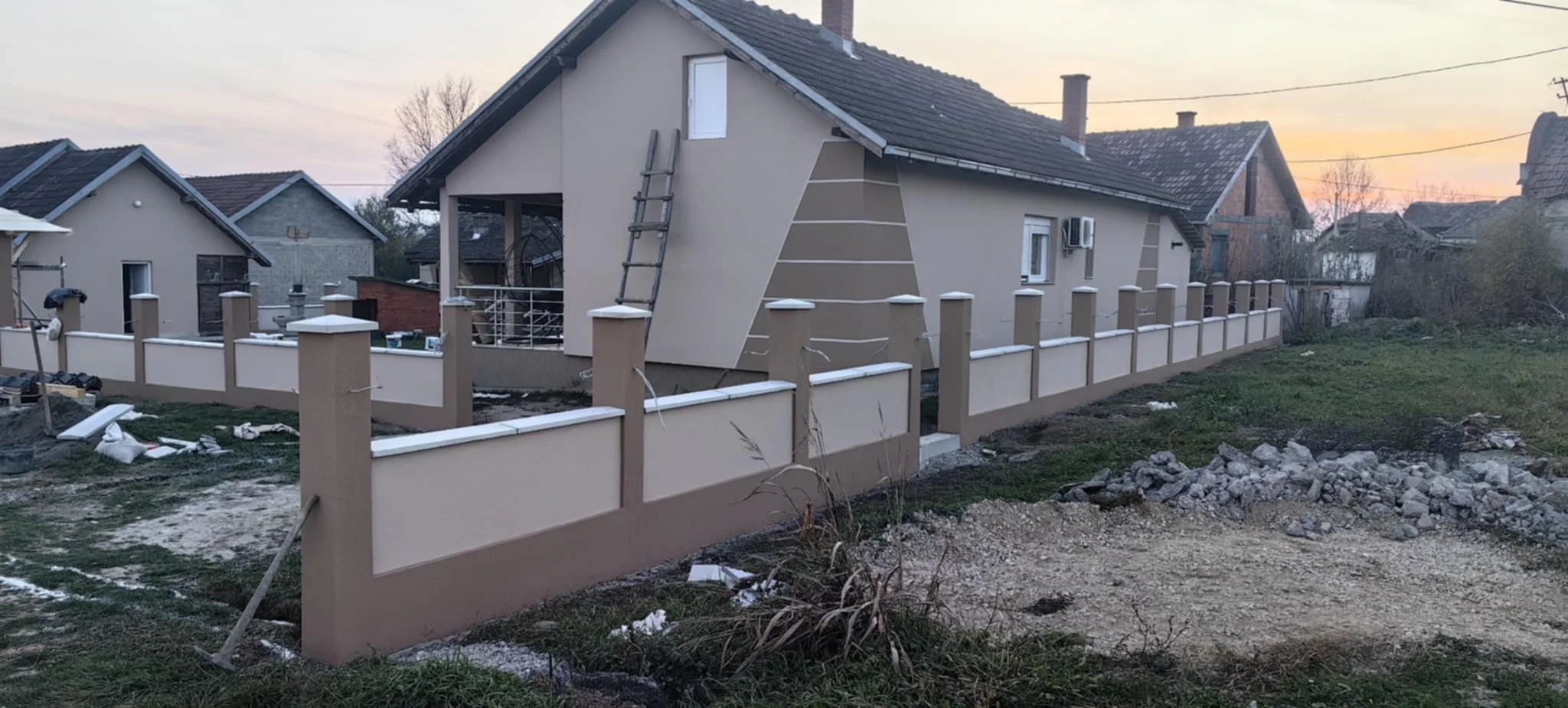– Na fasadama: lepljenje termoizolacije, mrežica, armiranje i završni dekorativni slojevi,
